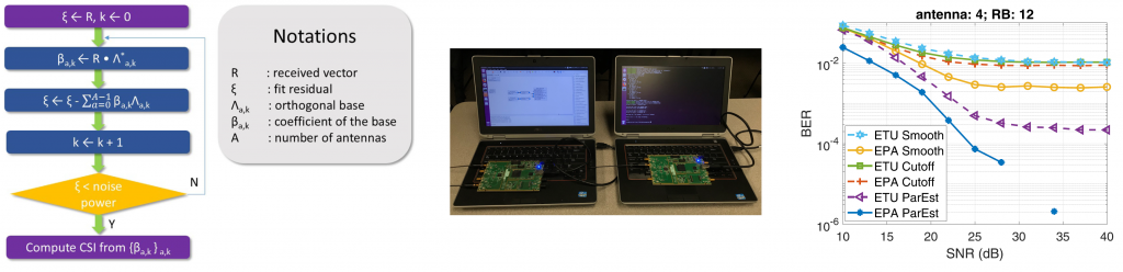 ParEst can immediately replace the existing CSI estimation methods in Wi-Fi and LTE/5G NR. For example, in LTE, to estimate the channel states, the node may transmit a peak on each antenna in the De-Modulation Reference Signal (DMRS). A cutoff method can be used, i.e., the signal around each peak can be carved out for each transmitter. However, the tail of each peak will be cutoff, leading to errors. In contrast, given the same received signal, ParEst estimates the CSI from all antennas jointly by solving an optimization problem. The complexity is very low, because the base sinusoids are on fixed frequencies and many steps are precomputed.
